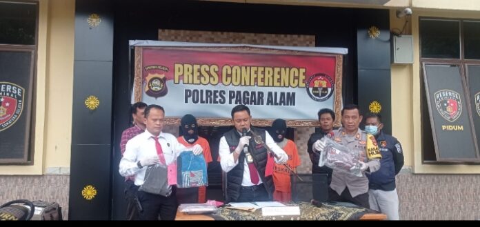 Kasat Reskrim Polres Pagar Alam IPTU Candra Kirana Pimpin Press Confrence Perkelahian Berdarah Di Belakang Ruko Kedai Hot Viral Jalan Gunung.