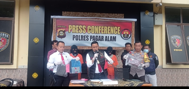 Polres Pagar Alam Melalui Satuan Reskrim melaksanakan Press Confrence terhadap kasus penganiayaan yang menyebabkan meninggalnya korban RC yang terjadi Minggu malam tanggal 15 Desember 2024 di belakang kedai Hot Viral jalan gunung Kelurahan Suko Rejo Kecamatan Pagar Alam Utara Kota Pagar Alam Rabu 18 Desember 2024.