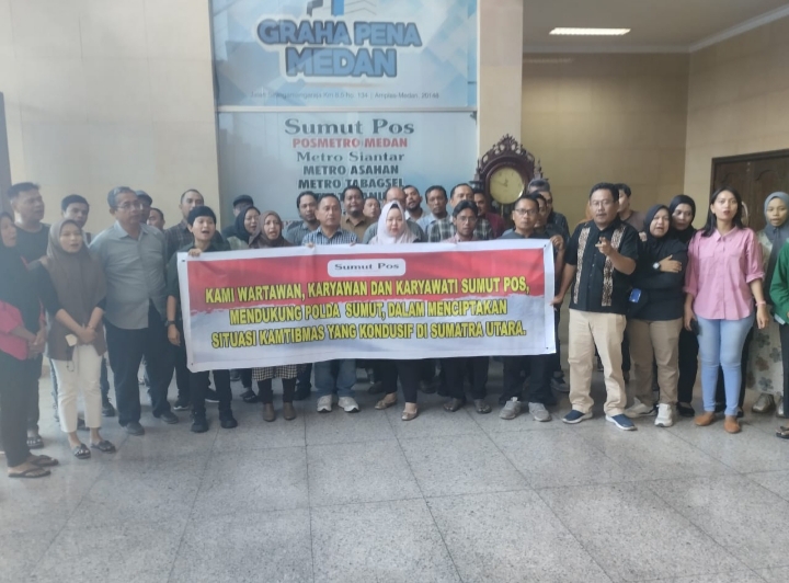 “Kita juga bertanggungjawab dalam menjaga Kamtibmas di Sumut. Sebagai perusahaan pers, harus ikut berperan menjaga Kamtibmas yang dimulai dari lingkungan tempat tinggal kita, lingkungan kerja dan ke masyarakat,”jelas Pimpinan Perusahaan, Pandapotan MT Siallagan didampingi Pemred Sumut Pos, Asih Astuti saat menggelar Forum diskusi, Sumut Pos mendukung penuh Poldasu dalam mewujudkan situasi Kamtibmas yang kondusif di wilayah Sumut, Senin (30/12) di Graha Pena Medan.