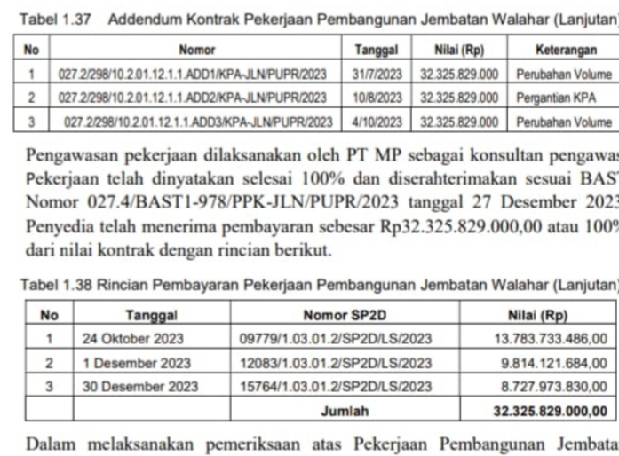 Dalam melaksanakan pemeriksaan atas Pekerjaan Pembangunan Jembatan