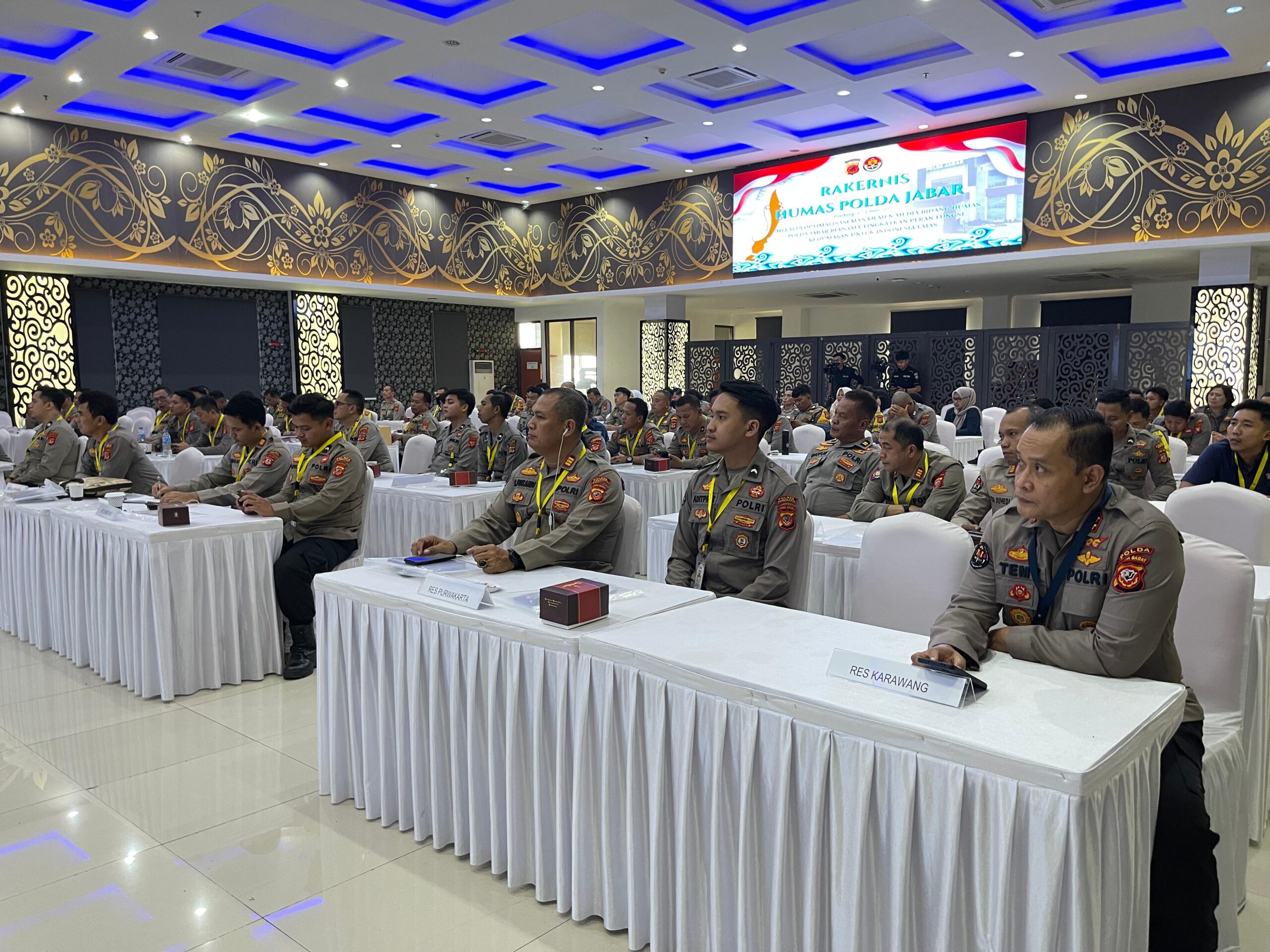 Kapolres Purwakarta, AKBP Lilik Ardhiansyah diwakili Kasi Humas, AKP Enjang Sukandi, bersama 1 personel Sihumas mengikuti Rapat Kerja Teknis (Rakernis) Bidang Humas Polda Jabar yang berlangsung di Aula Dit Lantas Polda Jabar.