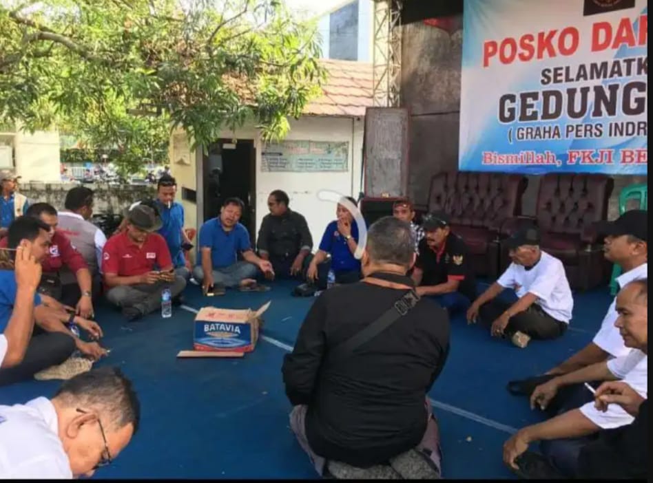 Ditambahkannya,sebagai tindakan nyata, hari ini kami menggelar mimbar bebas “Posko Darurat Selamatkan Gedung GPI” hingga senin nanti, yang diisi orasi penolakan pengosongan gedung GPI yang disuarakan 22 ketua organisasi dan komunitas pers yang tegabung dalam wadah Forum Ketua Jurnalis Indramayu(FKJI).