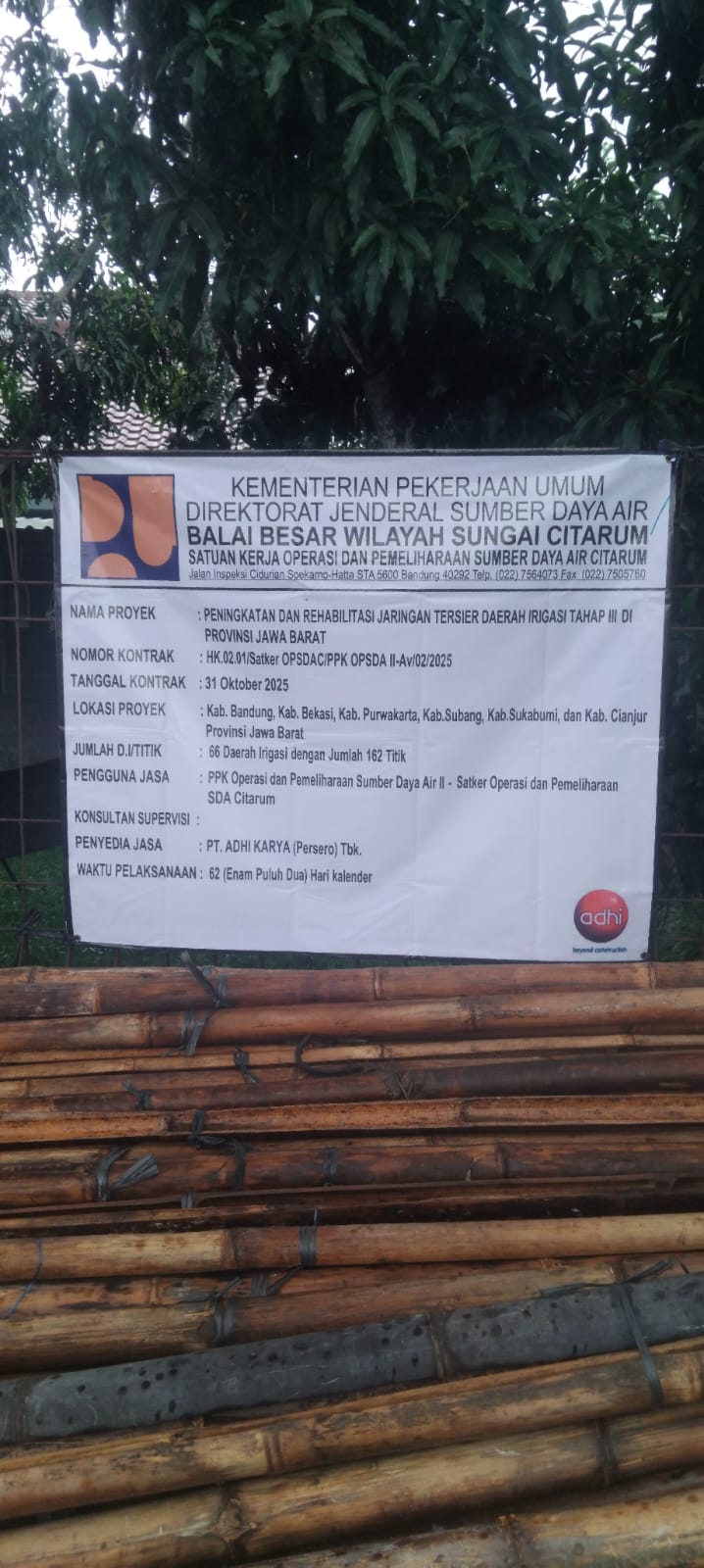 Beberapa hari ini telah berlangsung pembangunan saluran air tersier yang beralamat di kp pintu desa bantarjaya, yang di kerjakan oleh salah satu PT yang bernaung kepada negara atau kerap di sebut BUMN yaitu PT Adhikarya Persero.